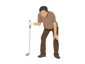 □アプローチで体重をかける、傾斜でのスイングで膝が痛む。
