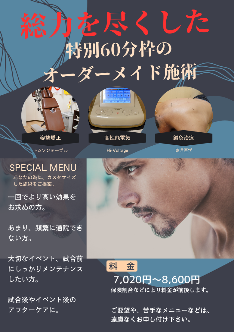 私の家からは少し遠くにある為、頻繁に通う事が出来ないのですが、丁寧な手技と最新の治療器によるアスリート向けのメニューを受けています。